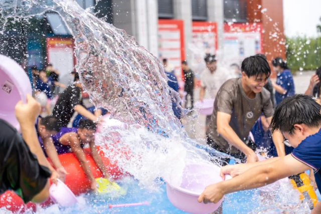 活动现场,学校操场变身“水上乐园”,师生们手持水枪、水盆等工具,在欢快的音乐中互相泼水祝福。清凉的水花洒向天空,传递着师生间的真挚情谊,也洗去了夏日的炎热。现场还设置了趣味水球大战、团队接力赛等互动游戏,同学们在游戏中团结协作,展现了青春风采。