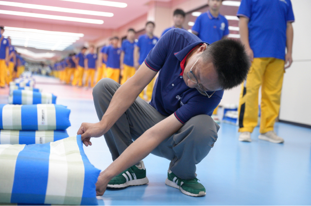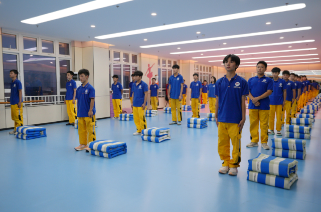 今日,成都万通校园内一场别开生面的“叠军被比赛”吸引了全校师生的目光。比赛现场,学子们动作利落、专注投入,一床床棱角分明的“豆腐块”军被整齐陈列,展现了学校准军事化管理的丰硕成果,更彰显了成都万通“以严格管理育优秀人才”的教育理念。