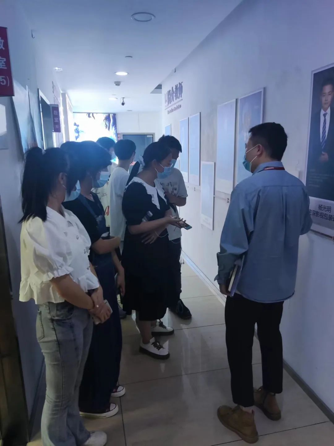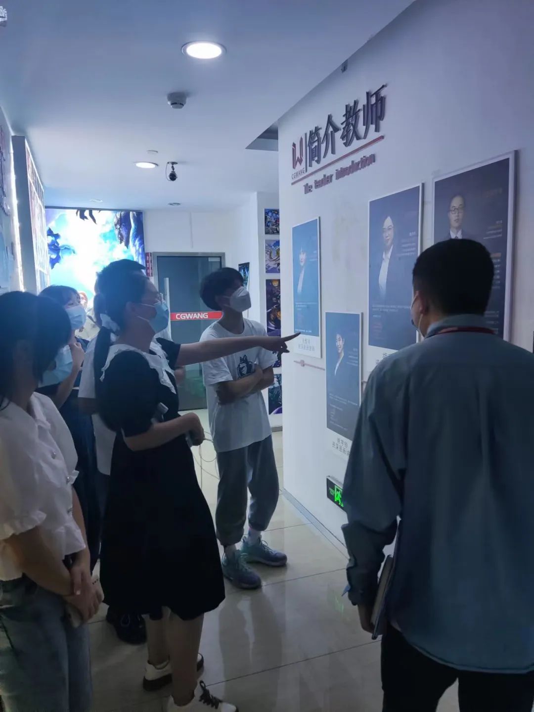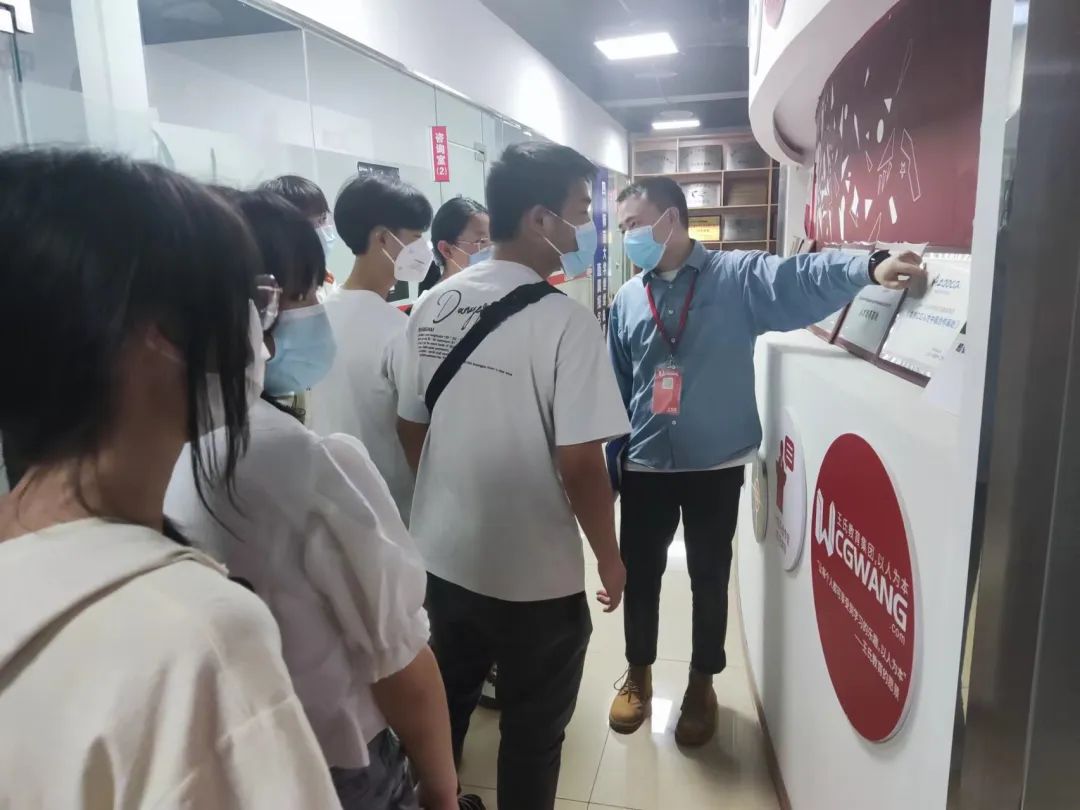 在凌老师的带领下,江阳职高的同学们首先参观了王氏教育的校园环境,大家听凌老师介绍了王氏教育的基本情况,并在展示区观看了许多优秀学员的作品和故事,深受鼓舞。