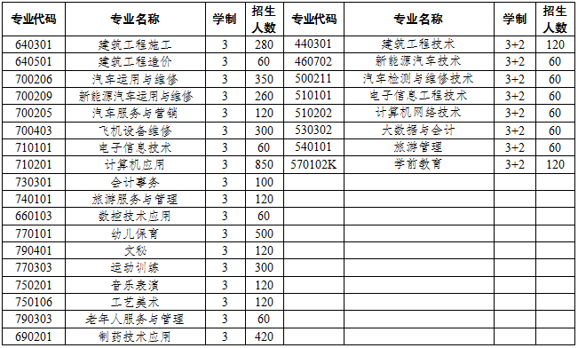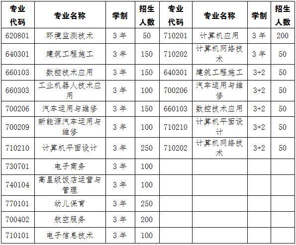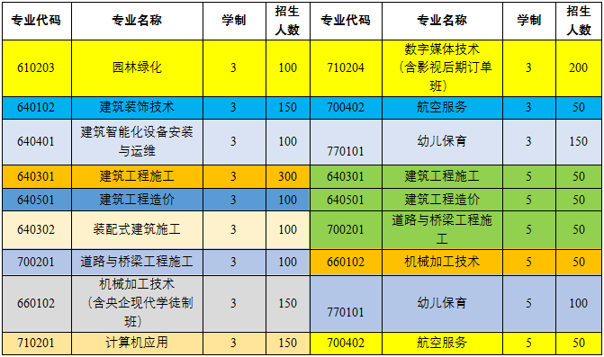 办学39载,逐步形成了以建筑专业为龙头,计算机、幼儿保育、机械、航空服务等12个品牌专业协同发展的品牌中职学校。开设有三年制中职班、3+2五年制全日制专业班。校企合作开办央企现代学徒制班,数字媒体(影视后期)订单班等。