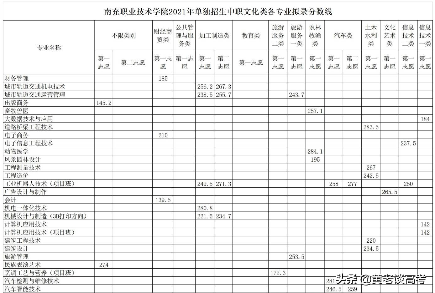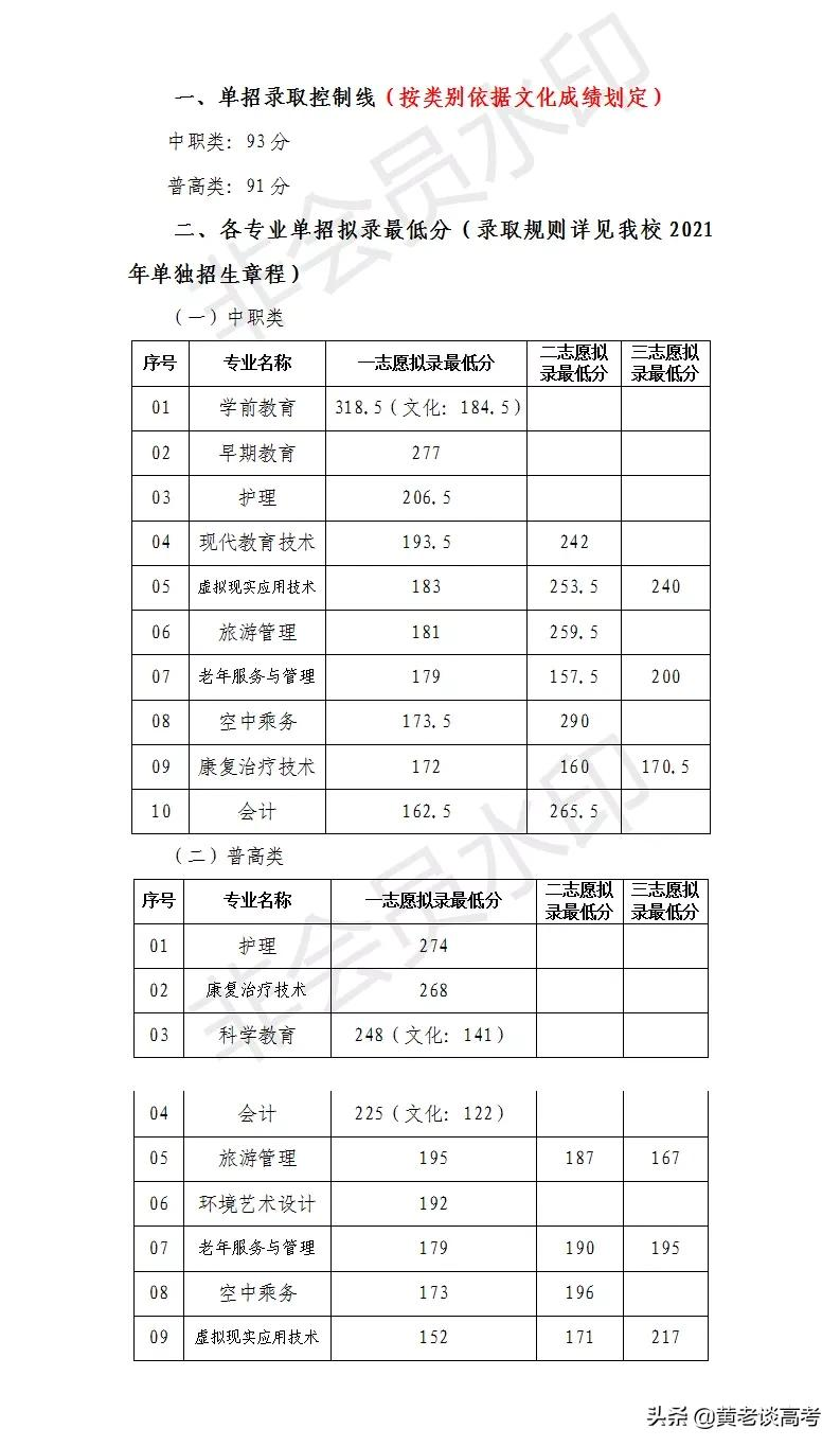 1、川北幼儿师范高等专科学校2021年高职单招拟录取分数线