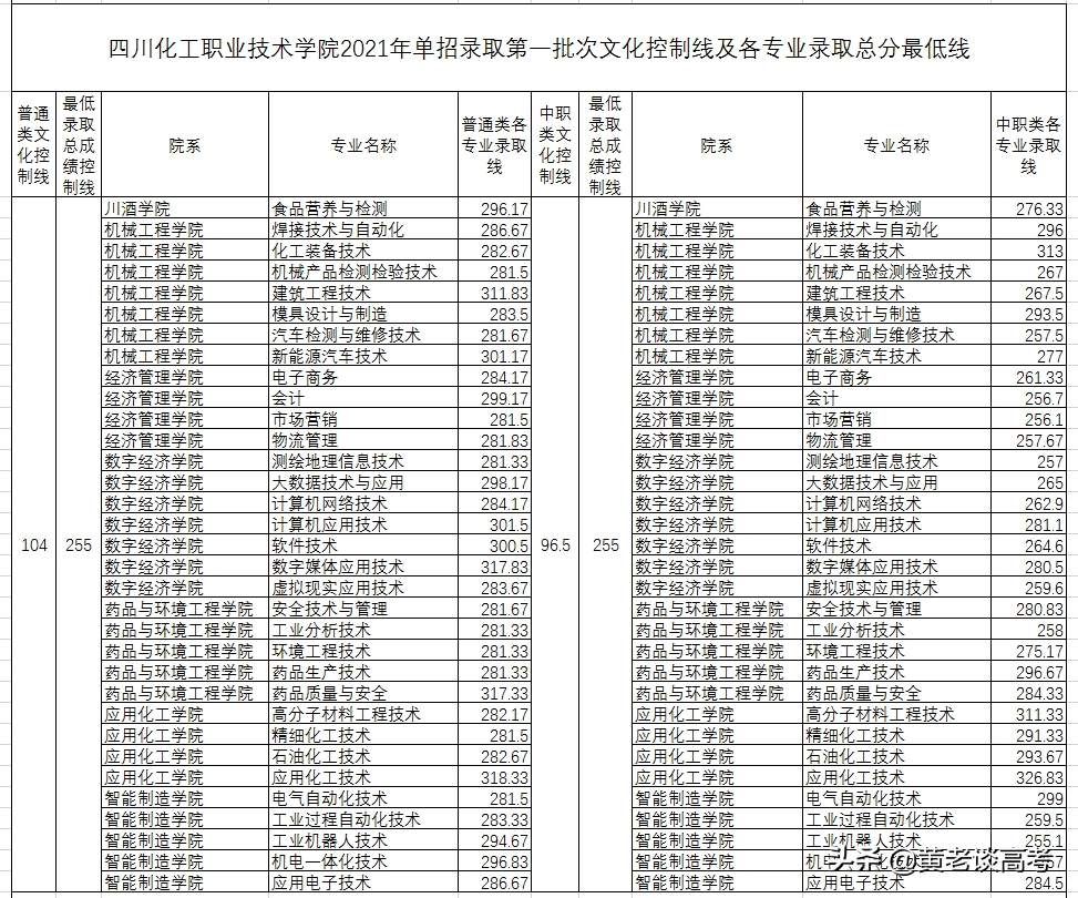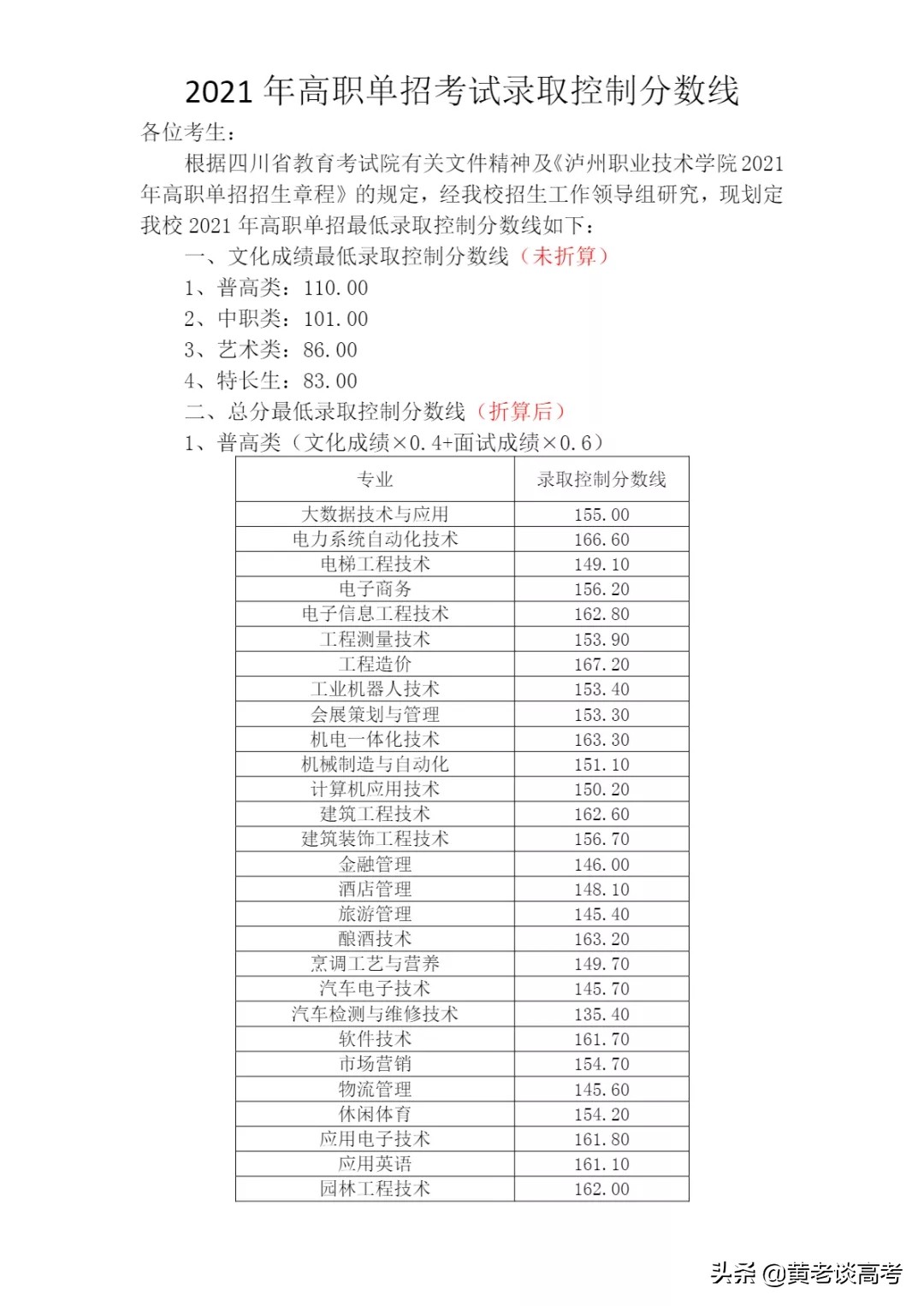 8、泸州职业技术学校2021年高职单招录取控制分数线