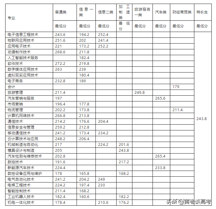 根据《四川省高等教育招生考试委员会 四川省教育厅关于做好2021年普通高等学校高职教育单独招生工作的通知》(川招考委〔2021〕1号)文件精神以及《乐山职业技术学校2021年普通高等学校高职教育单独考试招生章程》规定,经学校高职单招领导小组批准,现将2021年高职单招各类别的最低录取控制线和分类分专业最低录取分数线公布如下: