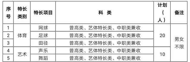 (二)特长类项目与招生计划