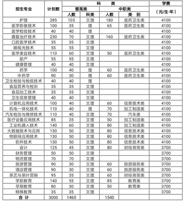2、该表中,护理、医学影像技术、医学检验技术专业为学校高分段建设专业;