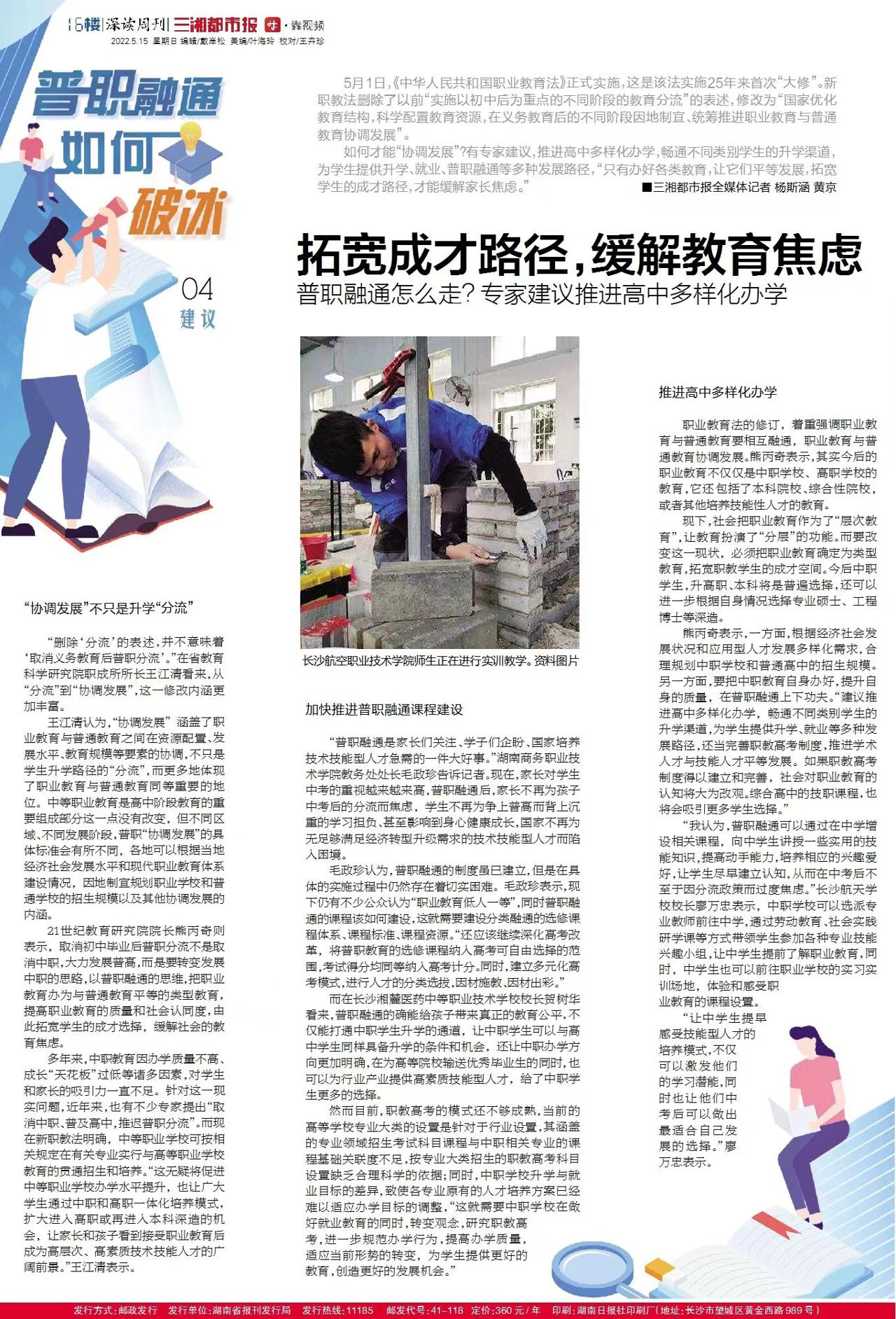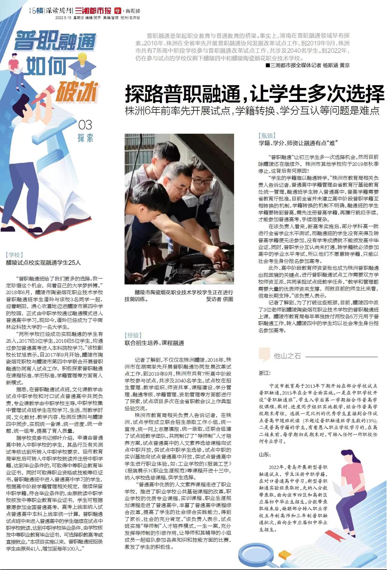 无论是去年中办和国办印发的《关于推动现代职业教育高质量发展的意见》,还是今年5月1日起实施的新职业教育法,都提出了促进不同类型教育横向融通,强调职业教育与普通教育要相互融通,职业教育与普通教育协调发展。可以说,普职融通已被视为架起中职和普高的一座桥梁,也是从普职分流到普职协调发展的必经之路。