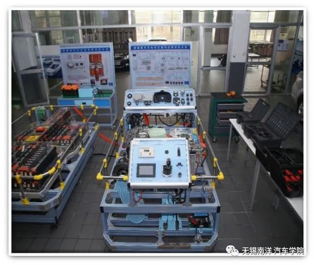 新能源汽车技术专业先后投入600余万元用于教学、科研及学生创新创业等配套实训室建设,目前建有纯电动汽车实训室、混合动力汽车实训室、动力电池实训室、驱动电机实训室及新能源汽车电气技术实训室。