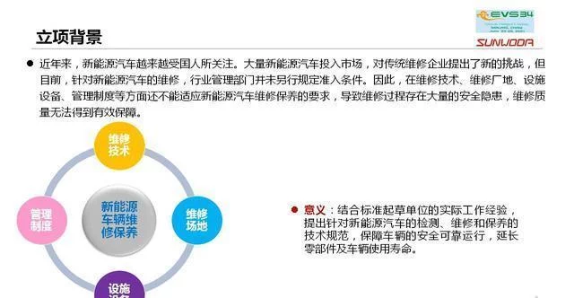 项目意义:结合标准起草单位的实际工作经验,提出针对新能源汽车的检测、维修和保养的技术规范,保障车辆的安全可靠运行,延长零部件及车辆使用寿命。