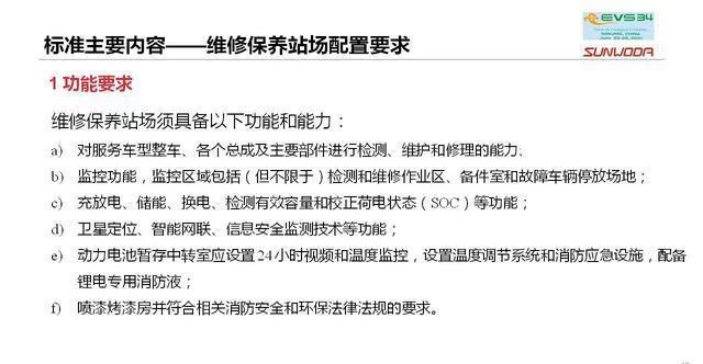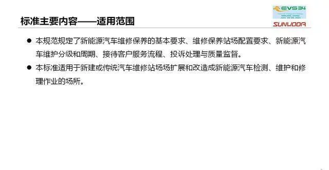 本标准明确了新能源汽车维修保养基本要求、站场配置要求,对新能源汽车维护分级和周期、接待客户服务流程、投诉处理与质量监督提出技术要求。给出了新能源汽车维修站点场地布局实例和维修站点专用设备与工具配备参考。