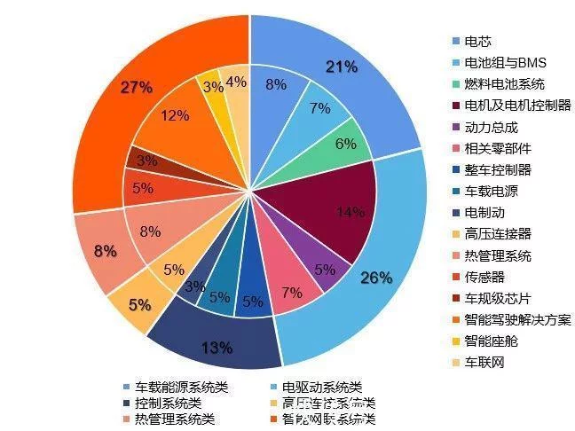 新能源汽车电控,IGBT,芯片与专用器件,超级电容器、车用MCU,电子控制模块,车用传感器,系统集成,接插件等;