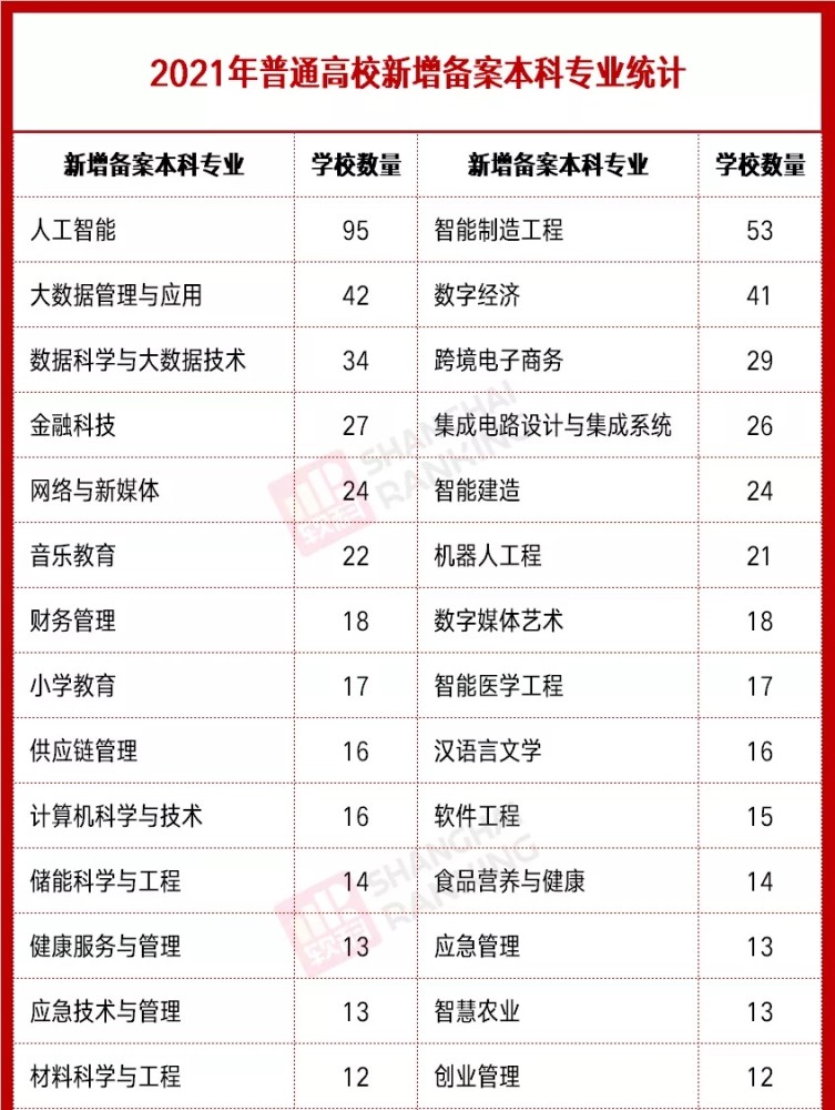 除了人工智能之外,高校新增比较多的专业中,还有智能制造工程、大户局管理与应用、数字经济、数据科学与大数据技术等,这些专业基本上都是围绕着计算机科学的不断发展带来的一些新产物而诞生的,而且基本上专业名字中都会出现一些大数据、智能等相关的字样。