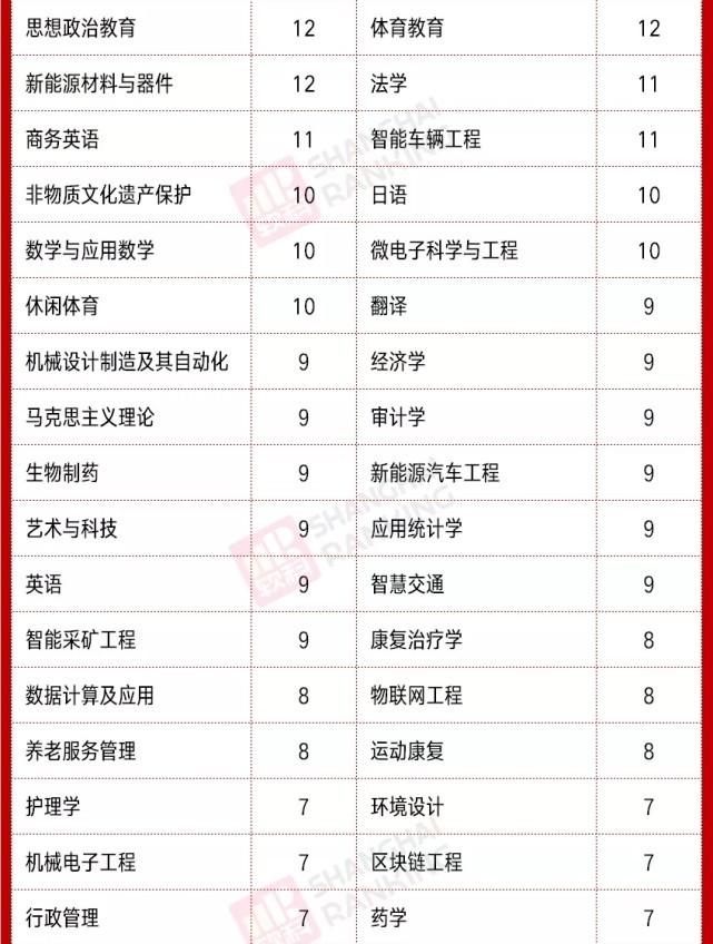 与此同时,新增数量较多的专业中,也有音乐教育、小学教育、体育教育等这些相对比较传统的专业,这些专业新增较多,主要和我国对于教育的大方向的转变有一定的关系,在这些年我国加大了对基础教育的重视,也加大了对艺术、体育的教育,所以相关的教育专业一些高校也就会选择增设。