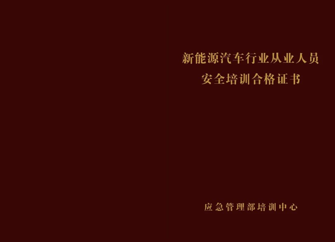 另外,报名参与新能源汽车从业人员安全培训的人员,还将获得由应急管理部培训中心颁发的《新能源汽车从业人员安全培训合格证》。