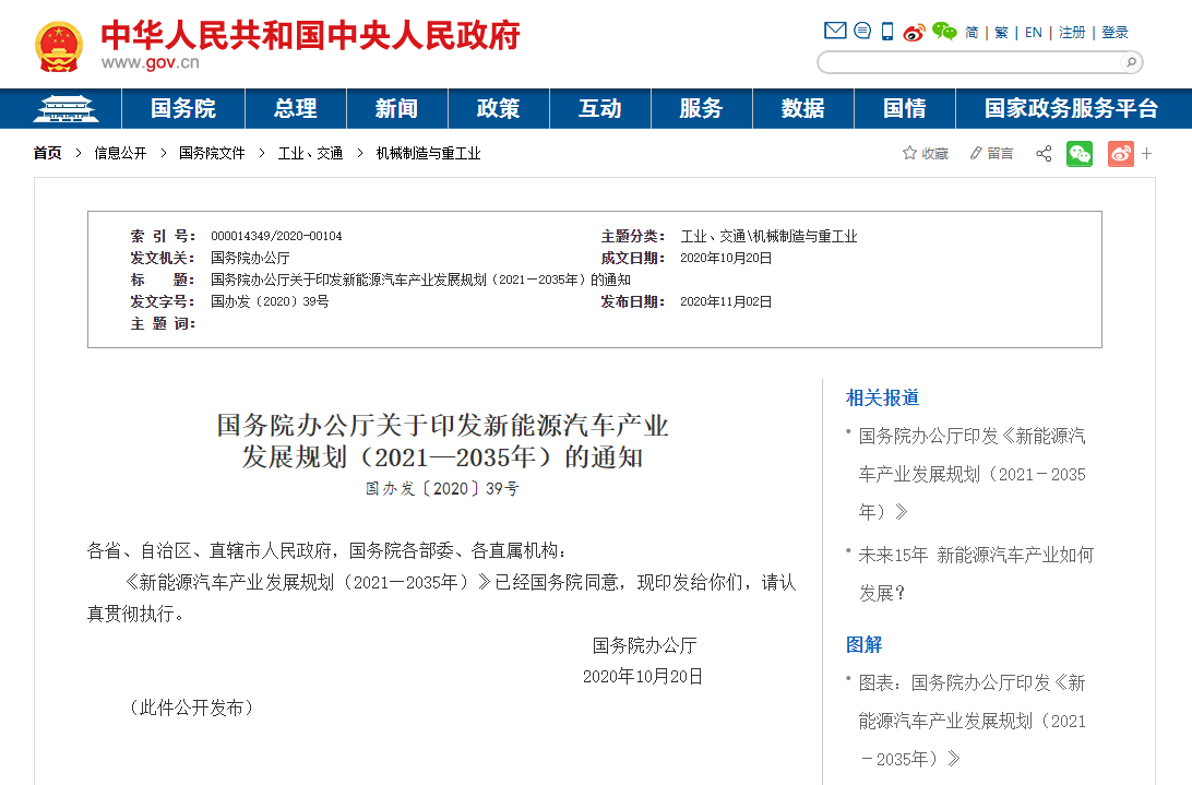 此前,国务院办公厅印发了《新能源汽车产业发展规划(2021-2035年)》,为我国新能源汽车产业未来15年的发展指明了方向。