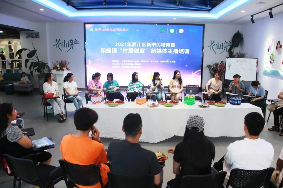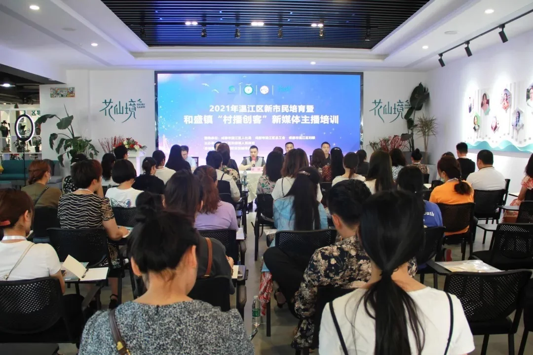 由成都市温江区人社局、成都市温江区总工会、区妇联、和盛镇人民政府及花仙境职业技能培训学校共同举办的《2021年温江区新市民培训暨和盛镇村播创客新媒体主播培训》于2021年6月7日在成都花仙境职业技能培训学校正式开班。