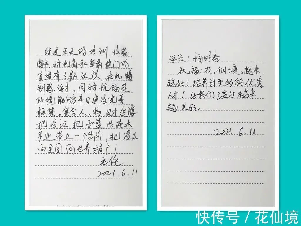 经过五天的培训,收获颇丰,对电商和当前热门的直播有了新认识,在此特别感谢!同时祝福花仙境能够早日建设完善框架,整合人、物、财、资源,把温江、和盛的花木产业带上一个台阶,把温江向全国、全世界推广!