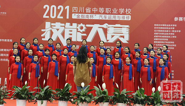 开幕式伊始,成都汽车职校的同学们为现场领导和嘉宾带来了合唱、舞蹈、走秀等精彩表演,以此向中国共产党建党100周年献礼。他们精彩的演出赢得了现场观众的阵阵掌声。