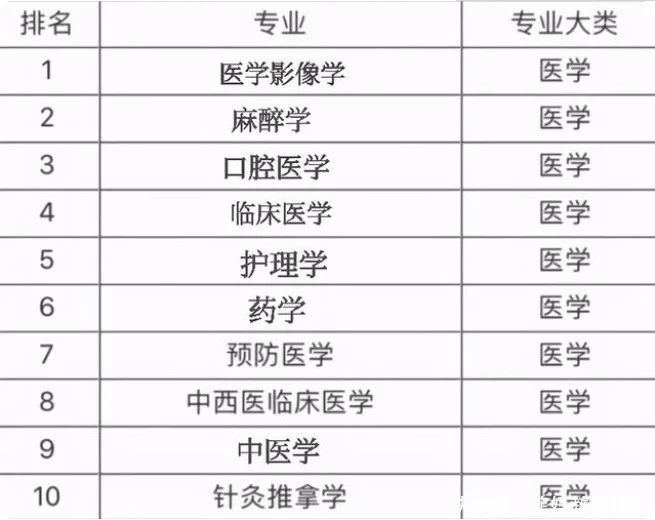 榜首专业是令人比较意外的,是医学影像专业,很多学生都没听说过这个专业,但这个专业的应用是非常广泛的。