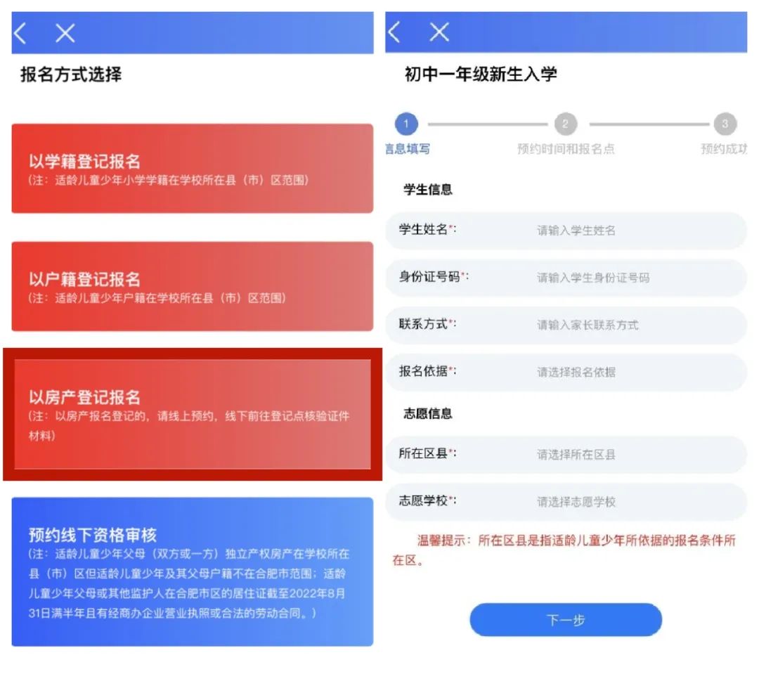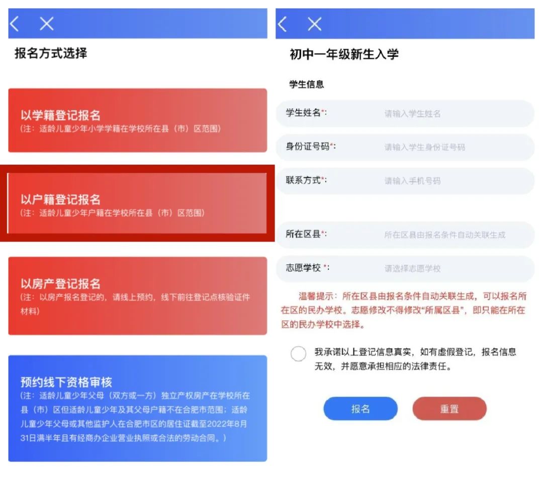 7月4日9:00,合肥市区公办小学网上报名开始。7月8日9:00,合肥市区公办初中网上报名开始,小升初回户口所在地单独报名的,可参考如下方式进行网上登记预约。