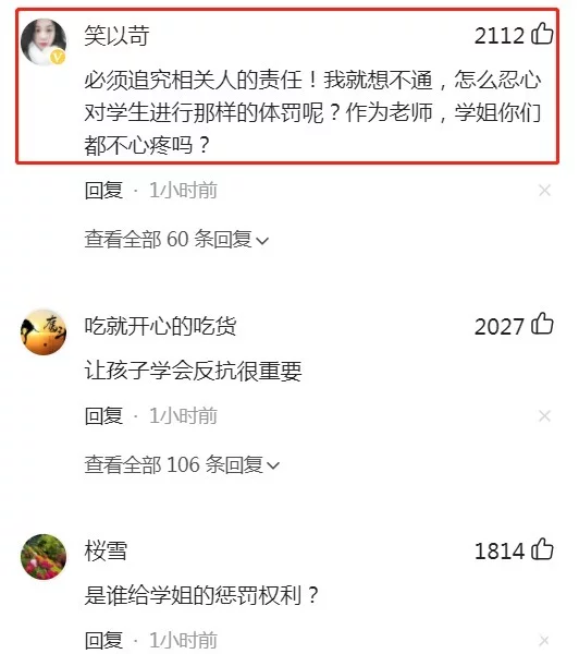 一波未平一波又起,但是看来前车之辙,并未成为后车之鉴啊。网友笑以苛:必须追究相关人的责任!我就想不通,怎么忍心对学生进行那样的体罚呢?作为老师,学姐你们都不心疼吗?