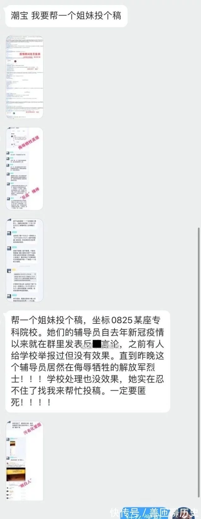 近日,有网友举报称,四川职业技术学校一名辅导员长期在课余时间使用班级群发表不当言论,内部涉及不满抗疫措施、诋毁戍边英雄事迹及抗美援朝、崇洋媚外等。据了解,该名辅导员系四川职业技术学校文化传播系的专职辅导员唐某丁。