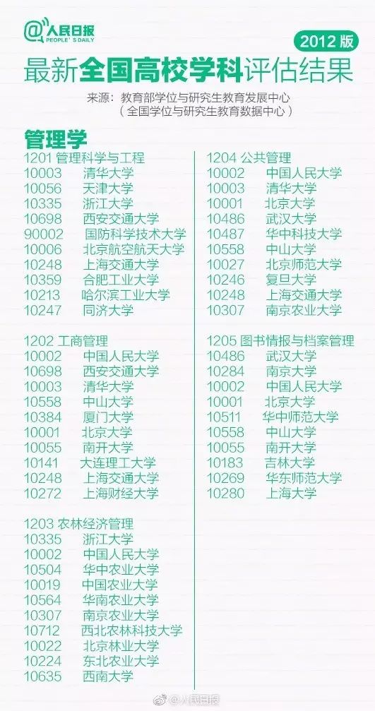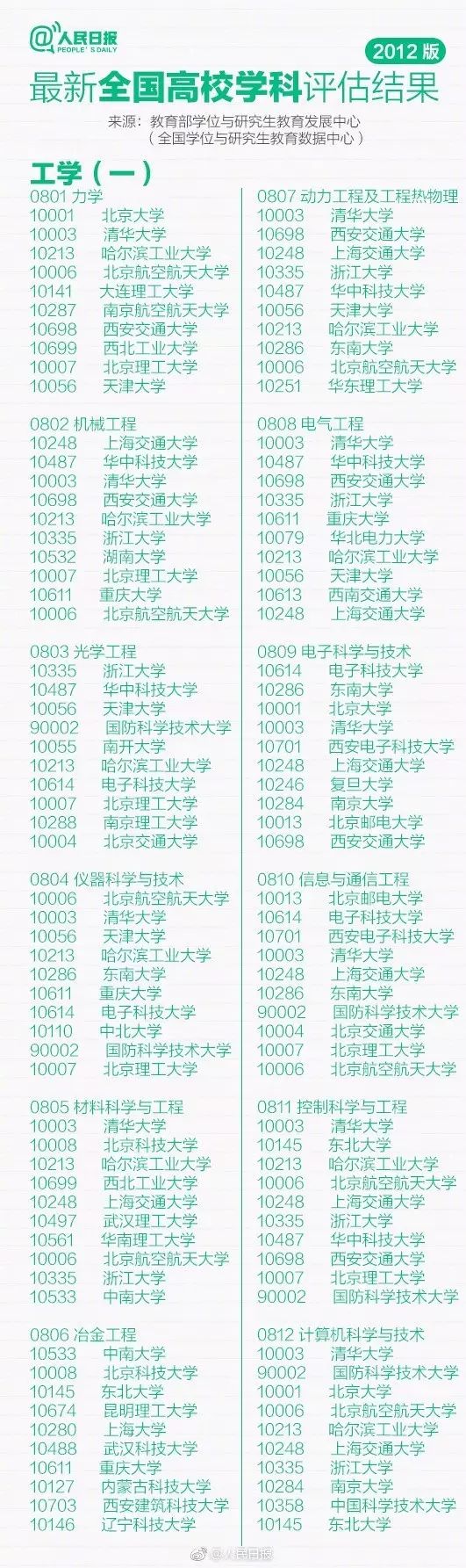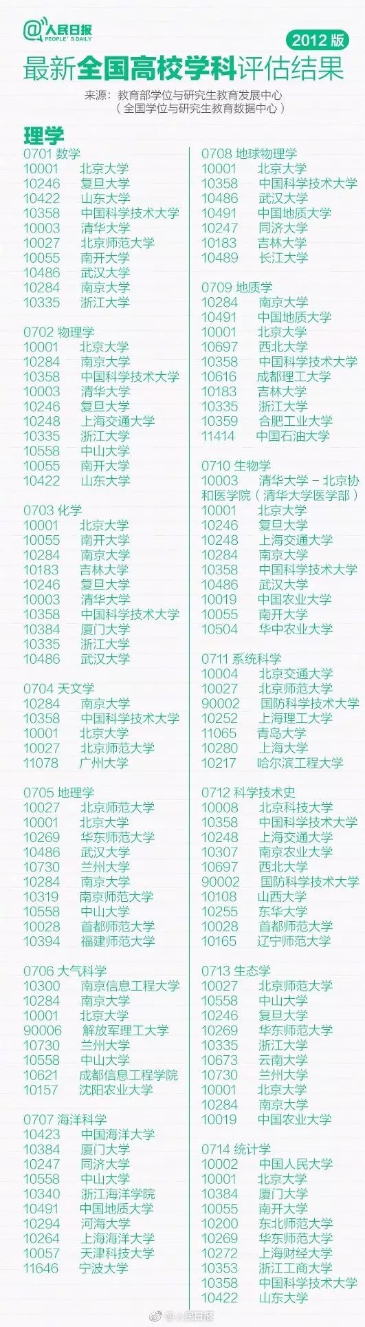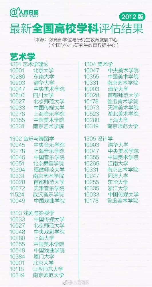 来看看教育部权威发布的各学科排名前十的学校,文、理、工、农、医、管理、艺术,7大门类都有!