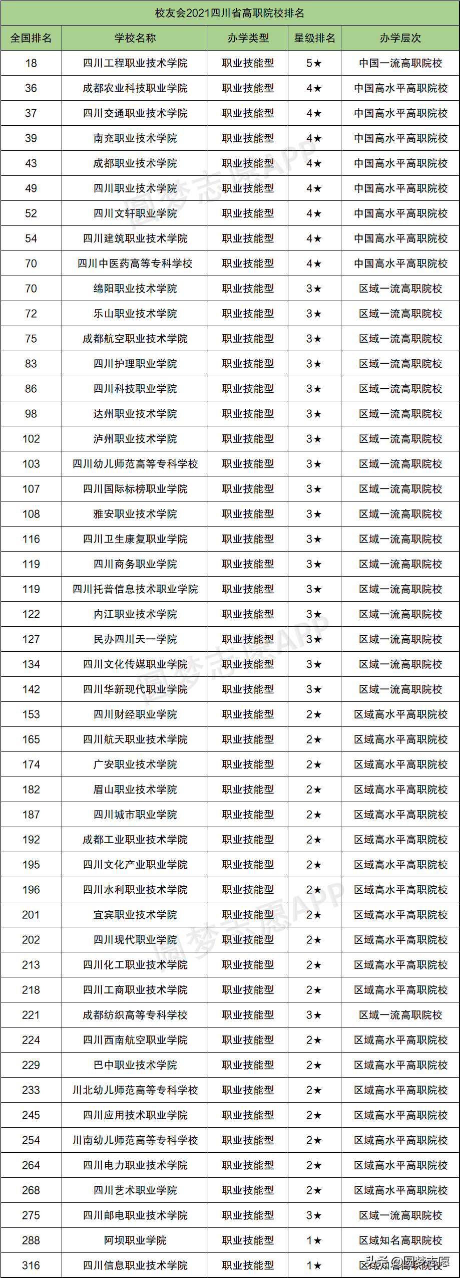 (2)校友会2021四川省高职院校排名(全部)