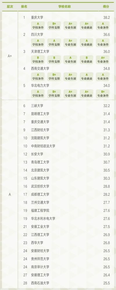 2021年6月22日,高等教育评价专业机构软科正式发布2021软科中国大学专业排名。在工程造价专业排名中,共有142所高校上榜,A+层次的高校依次为重庆大学、四川大学、天津理工大学、西南交通大学、华北电力大学。