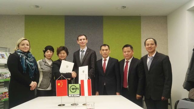 2017年10月龙泉驿区政府副区长刘埊、教育局副局长李长广、学校校长韦生键到奥地利WIFI学校签署了友好合作协议。