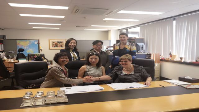 2014年澳洲詹姆斯库克大学(新加坡校区)合作办学签约仪式(左一詹姆斯库克大学中华区负责人),引入该校英语课程。2015年学校学前专业学生胡姊怡到该校新加坡校区留学,次年通过专升本考试,现就读于澳洲本部旅游管理专业。