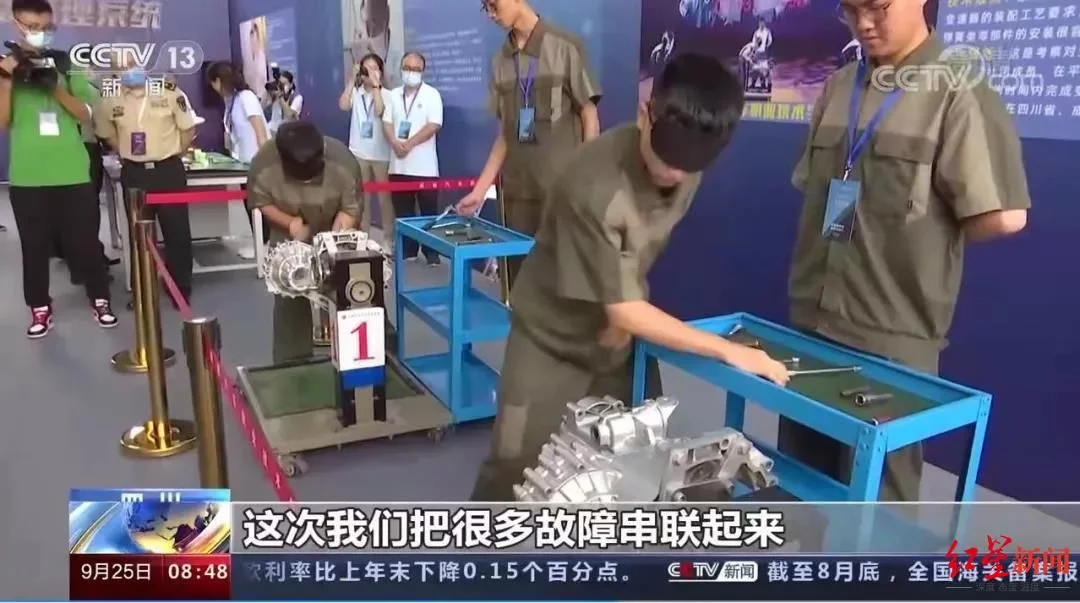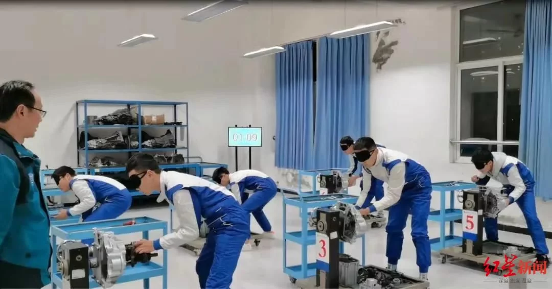 但在2021年9月,来自成都汽车职业技术学校的变速器盲拆社团,在蒙着眼睛的情况下,用时不到5分钟,就完成了变速器拆装。他们也凭这个神操作,登上了央视。