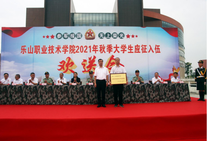 9月10日上午,乐山职业技术学校召开2021年秋季新兵入伍欢送会,42名大学生通过层层考核,即将以秋季新兵的身份启程奔赴军营,开启军旅生涯。乐山市委常委、军分区司令员王建华,乐山市人民政府副市长邓华,市政府副秘书长陈红军,乐山军分区动员处处长陈登文,乐山市市中区人武部政委田旺清,学校院级领导及相关处室负责人,系(部、院)书记、专职副书记,入伍学生所在班级辅导员及4300余名新生出席了欢送活动。
