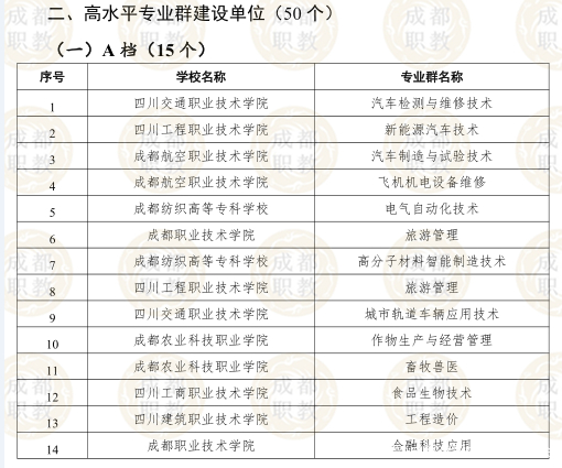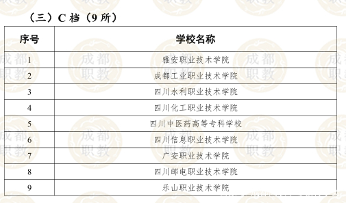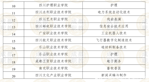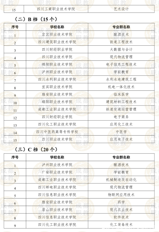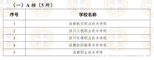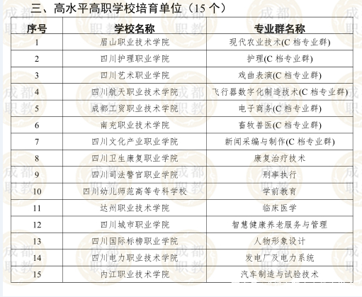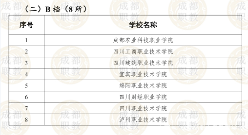 在B档拟入选的8所院校中,成都农业科技职业学校和四川建筑职业技术学校也均入选了国家双高计划建设单位。
