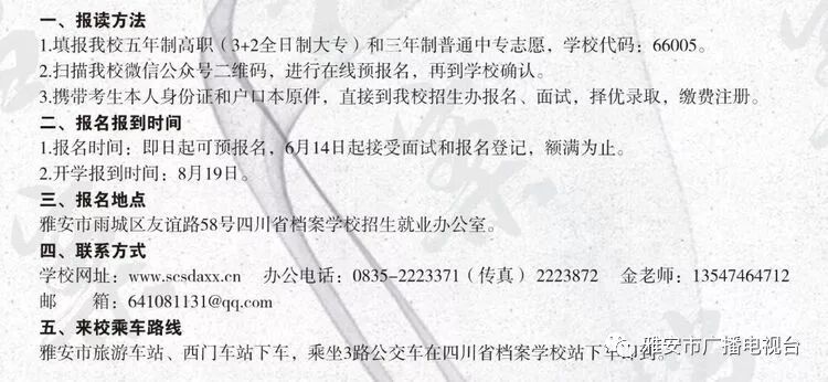 图书档案管理、文秘、环境艺术设计这三个专业前面三年是在四川省档案学校学习,后两年直升转录到四川艺术职业学校(公办)就读全日制专业。