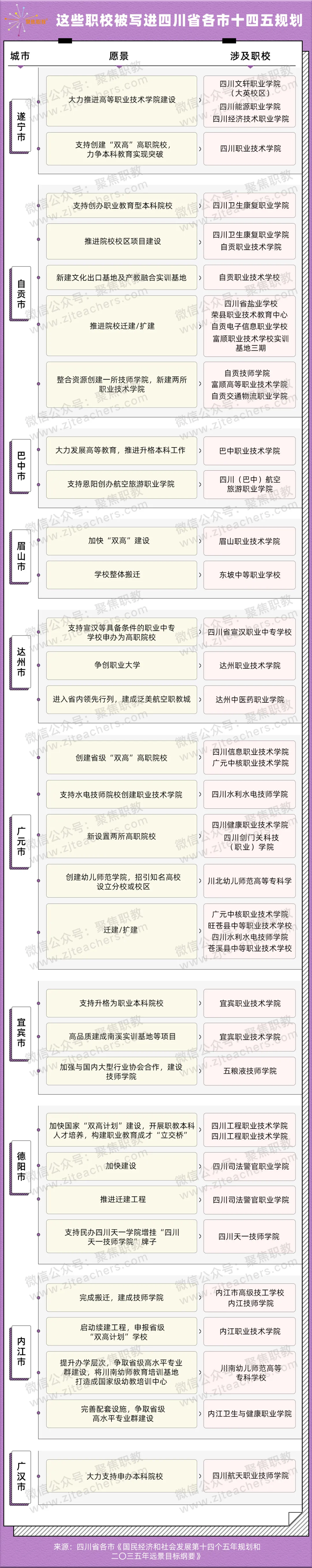 聚焦职教分别整理了四川省12市十四五规划中提名的职校,具体内容如下: