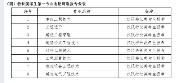 特长类考生第一专业志愿可选报专业表