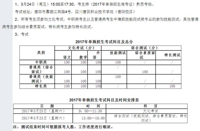 四川建院2017年单独招生