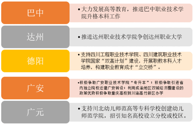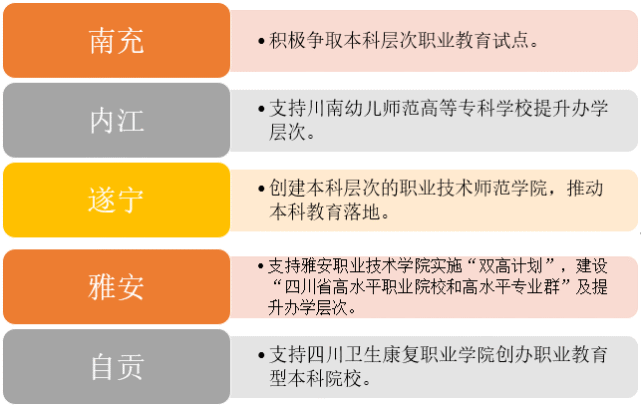 《规划》中提出,支持南充职业技术学校开办职业教育本科专业和创建职业本科大学。到2025年,1-2所新建高职院校纳入省十四五高校设置规划。