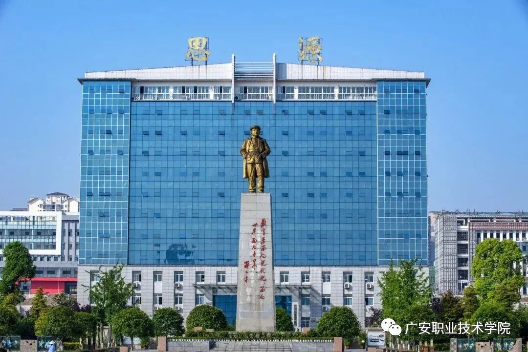 广安职业技术学校是由广安市人民政府主办,教育部、四川省、广安市共建的全日制公办普通高等学校,学校坐落于我国改革开放总设计师邓小平同志的故乡、全国文明城市、中国优秀旅游城市、国家森林城市、国家卫生城市、国家双拥模范城市广安。学校前身为1906年创建的岳秀女学,著名革命英雄传奇小说《红岩》中双枪老太婆的原型人物陈联诗、邓惠中均毕业于此;2004年,经四川省人民政府批准,由四川省岳池师范学校独立升格。2009年,学校顺利通过了教育部人才培养工作水平评估;2011年,四川省教育厅、广安市人民政府签订协议共建学校;同年,国家教育部、四川省人民政府签订协议共建广安市教育改革发展试验区,支持学校发展是重要项目;2014年6月,广安区中等卫生职业技术学校整体并入学校;2014年,四川省人民政府审定同意学校增挂广安技师学校牌子;2016年1月,学校成为四川省省级示范性高职院校;2020年12月,学校成功创建为四川省优质高等职业院校。目前,学校共有滨江、前锋、奎阁、岳池四个校区,总占地面积1000多亩,总建筑面积48万余平方米,教学科研仪器设备总值达9000余万元;设有智能制造与能源工程学校、学前教育学校、土木工程学校、经济管理学校、电子与信息工程学校、医学校、师范学校、艺术学校、马克思主义学校和国际教育学校等10个二级学校,开设有45个高职专业,有全日制专业在校生15000余人;现有中央文献研究员高屹、全国中青年德艺双馨文艺工作者林强、德国石荷州前教育及文化部部长克鲁科博士、著名青年画家林茂先生等高级顾问、特聘教授领衔的专兼职师资队伍650余人,其中副高级及以上职称210人,博士研究生241人。
