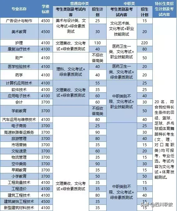 广告设计与制作/美术教育仅限美术与设计类考生报考计算机应用技术/软件技术可选读德克特项目班汽车运用与维修技术可选读中德诺浩校企联合培养班电子商务/高速铁路客运乘务/文秘速录/空中乘务为校企深度合作专业学前教育/旅游管理/建筑工程技术/工业机器人技术为学校一流专业备注:所有招生专业、计划以四川省教育考试院公布为准