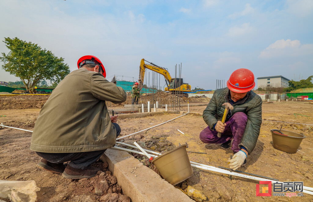 春回大地,万物复苏,项目建设正当时。3月2日,在大安区东部新城的自贡职业技术学校二期工程建设现场,重型机械巨臂伸展,水泥浇筑有序进行,工人们抬的抬,扛的扛,敲的敲,施工如火如荼。据悉,二期工程预计今年8月建成投用,届时可容纳13000名学生学习、生活。