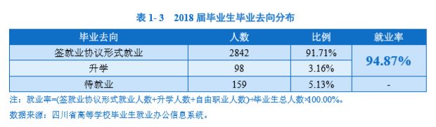 来源:成都纺织高等专科学校2018毕业生就业质量年度报告