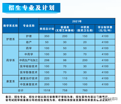 2021年四川中医药高等专科学校招生专业: