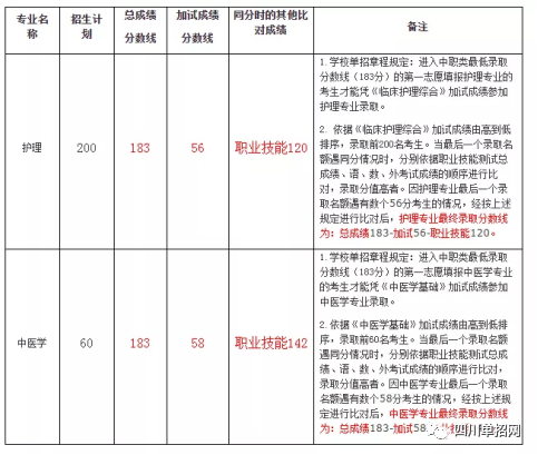3.中职类护理和中医学专业的录取(双上线)