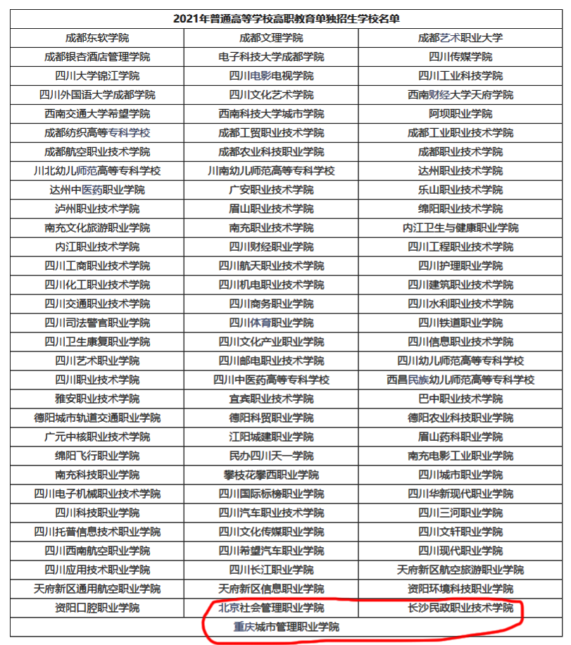 2021年四川高职单招学校名单