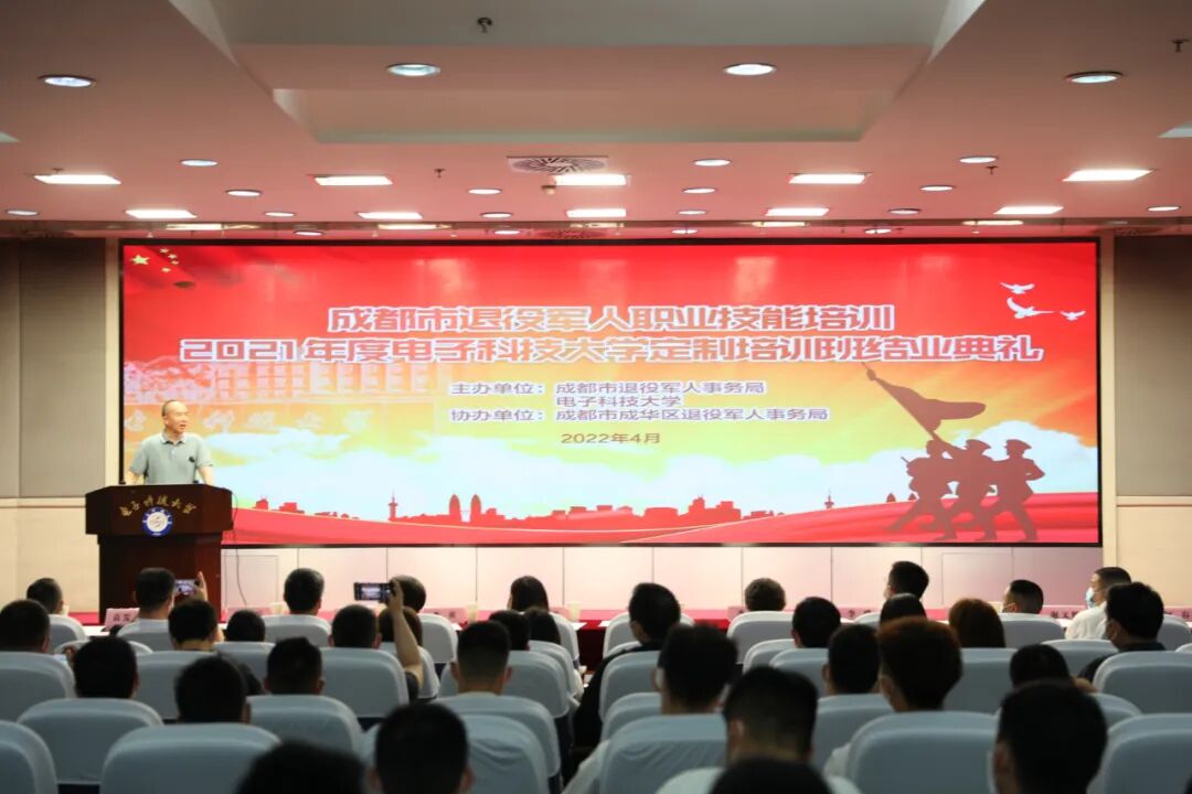 4月29日,由成都市退役军人事务局、电子科技大学主办,成华区退役军人事务局协办的成都市退役军人职业技能培训2021年度电子科技大学定制培训班结业典礼暨培训专题研讨会在电子科技大学举行。成都市退役军人事务局党组成员、副局长方利红出席典礼并讲话,市退役军人局就业创业处、市军服中心及部分区(市)县退役军人局相关负责人参加典礼。