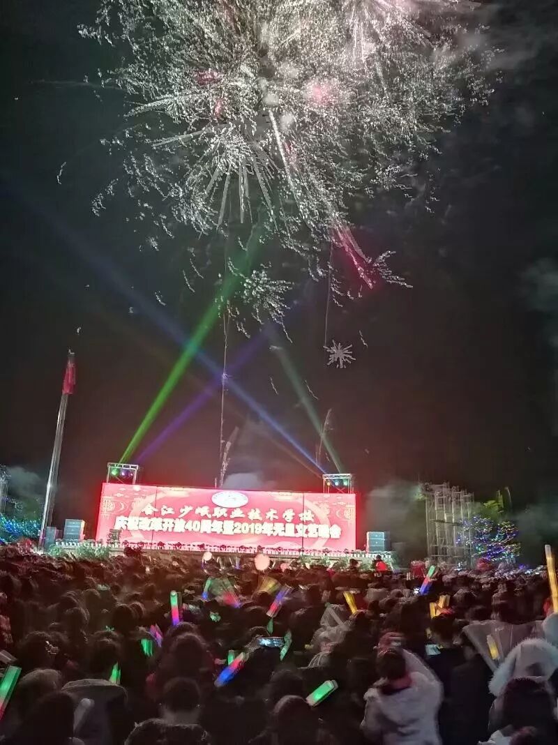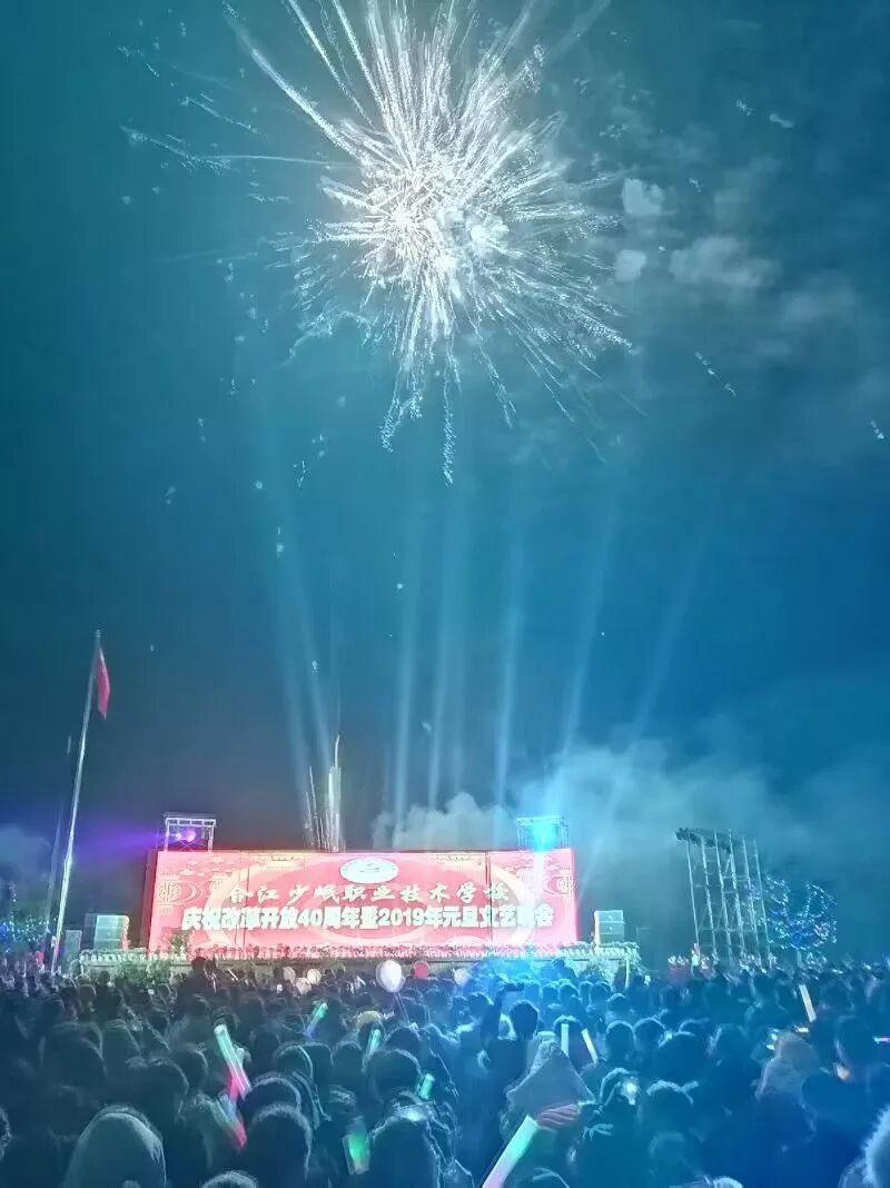 晚会开始前,发布了校长邓生恒率校务委员会成员及各个专业对各界朋友、特邀嘉宾、历届校友和全校师生的真诚感谢和新年祝福。各位领导、特邀嘉宾及全校师生一同观看了现场燃放的绚丽多彩、五光十色的烟花。