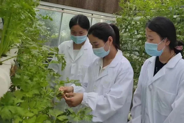 随后,他们又赶赴附近的大棚菜生产基地,查看大棚菜生长情况。当他们发现芹菜、辣椒、番茄等大棚菜有病虫害现象时,当即指导农户进行处理,并建议改善蔬菜生长环境,防止病虫害的发生。师生们还就蔬菜生长中常见疾病的防治知识进行了普及,并就大棚菜种植生产过程中施肥管理、整枝修剪等环节给予技术指导。