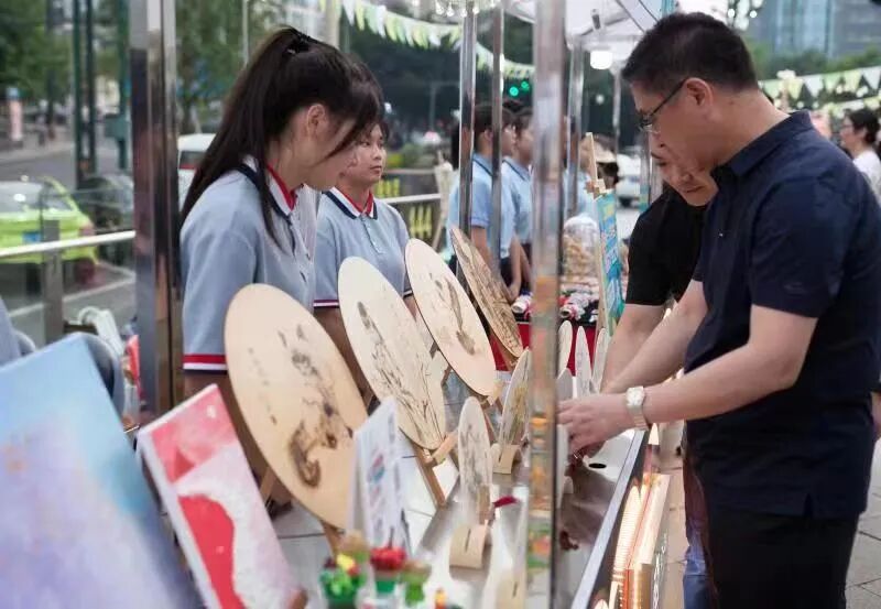 一把把古色古香的小扇,一串串做工精巧的烙画,一个个栩栩如生的装饰品,这些手工制品都是出自于我校学生之手,做工精美的手工制品深受市民朋友的喜爱,一场稳就业 促消费的宜宾大夜市活动在叙州区莱茵春天门口举行。