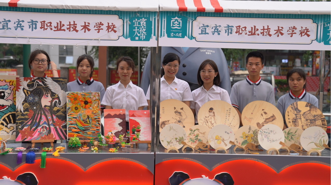 本次的宜宾大夜市活动,为我们提供免费的场地、摊位推车、免费指导等服务,学生们将自主创意制作的手工画等作品进行展示和售卖,掀起了学生们创业体验的热潮,助力学生就业创业。